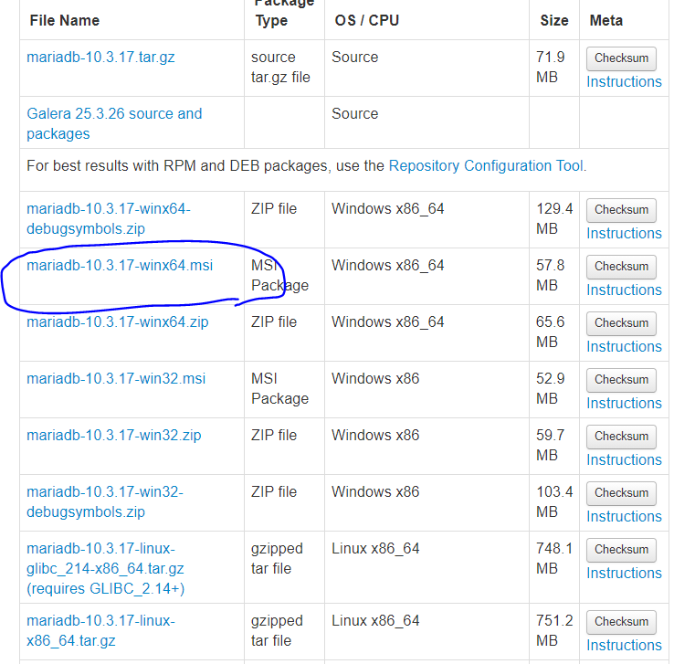 Maria DB를 설치를 위해서 https://downloads.mariadb.org/mariadb/10.3.17/