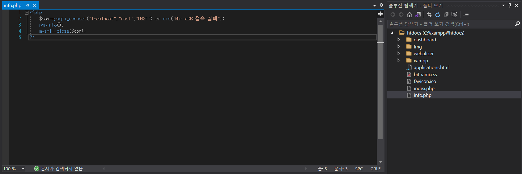 C:\xampp\htdocs 폴더로 가셔서 info.php 파일을 만들어주시고