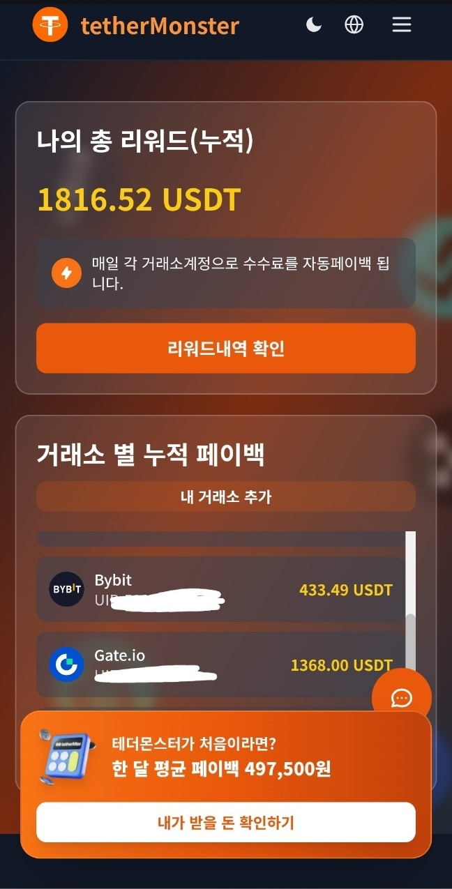 셀퍼럴 테더몬스터는 자기 추천인 코드로 최고 수준의 암호화폐 거래 페이백을 제공하는 서비스입니다. 셀프 추천인, 실시간 자동 출금, 투명한 정산, 업계 최고 페이백율을 경험하세요.