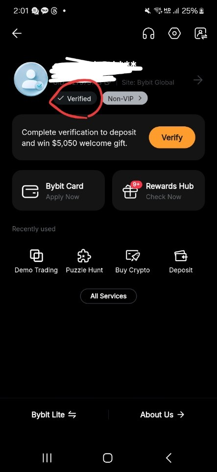 2. 가입이 완료되셨다면 로그아웃 후 기존에 사용하시던 바이비트 계정으로 로그인 후 Verified를 클릭합니다.