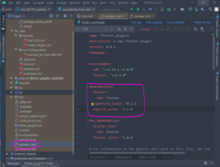 플러터의 의존성은 pubspec.yaml파일이 담당합니다.