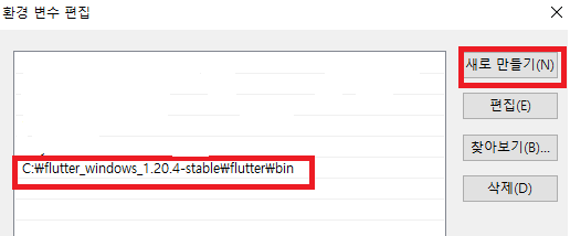 flutter에서 압축을 해제하여 flutter폴더에있는 bin폴더의 경로를 추가해주면됩니다.