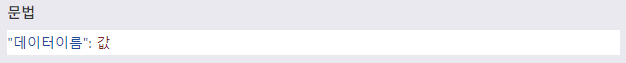 - JavaScript Object Notation라는 의미의 축약어로 데이터를 저장하거나 전송할 때 많이 사용되는 경량의 DATA 교환 형식이다.
