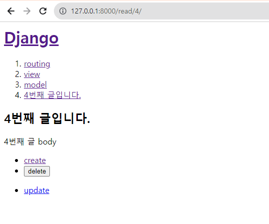 # 본 프로젝트에서는 글생성, 읽기, 삭제, 수정 이 있기때문에 4개의 path를 추가해주었다.
