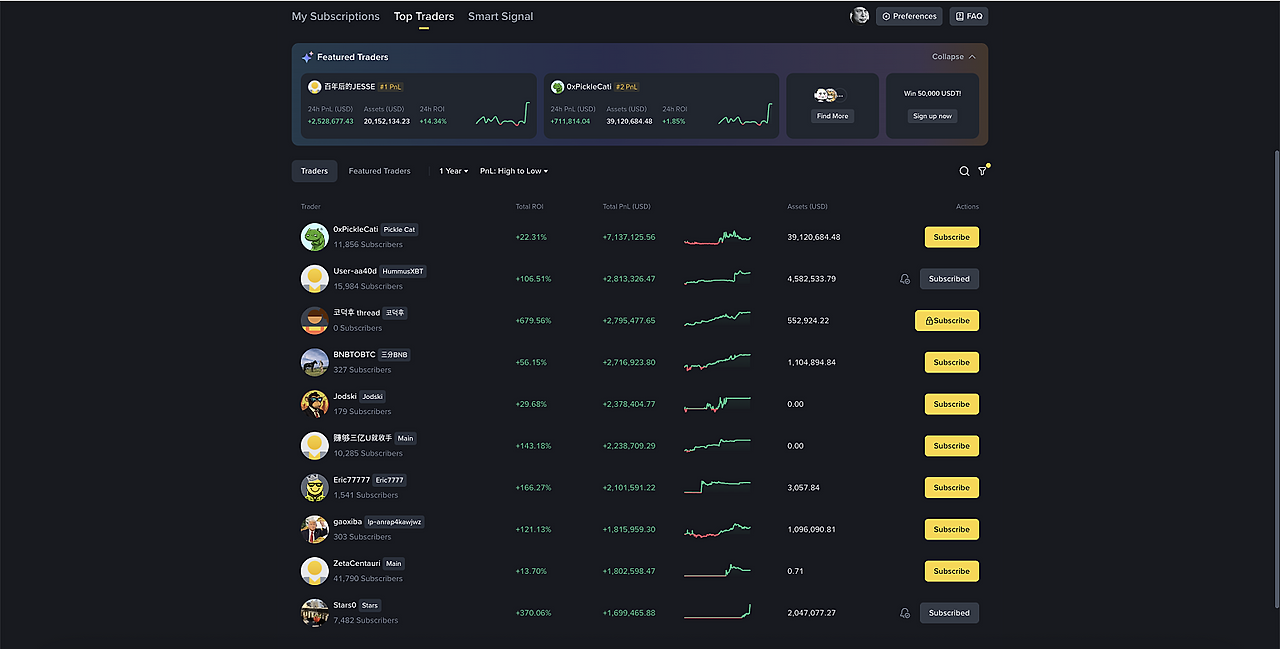바이낸스 거래소가 운영하는 랭킹사이트로, 바이낸스 유저 중 상위유저들의